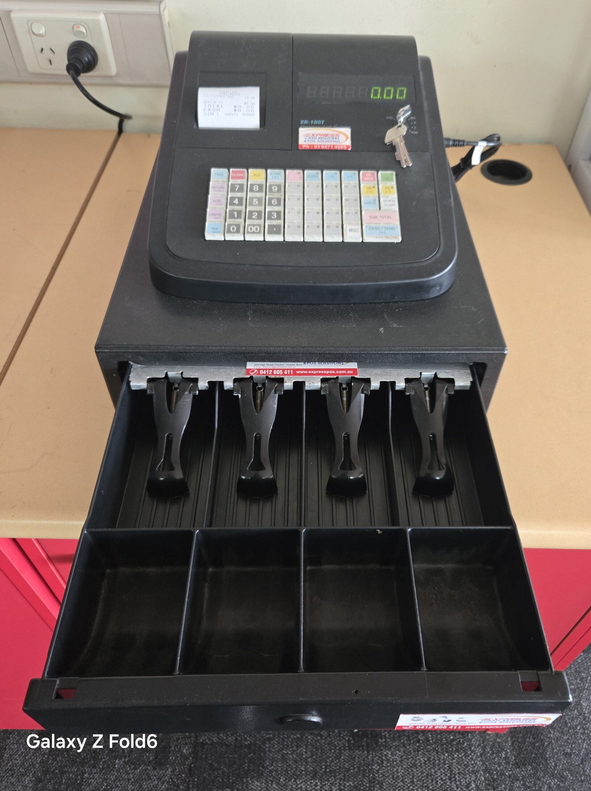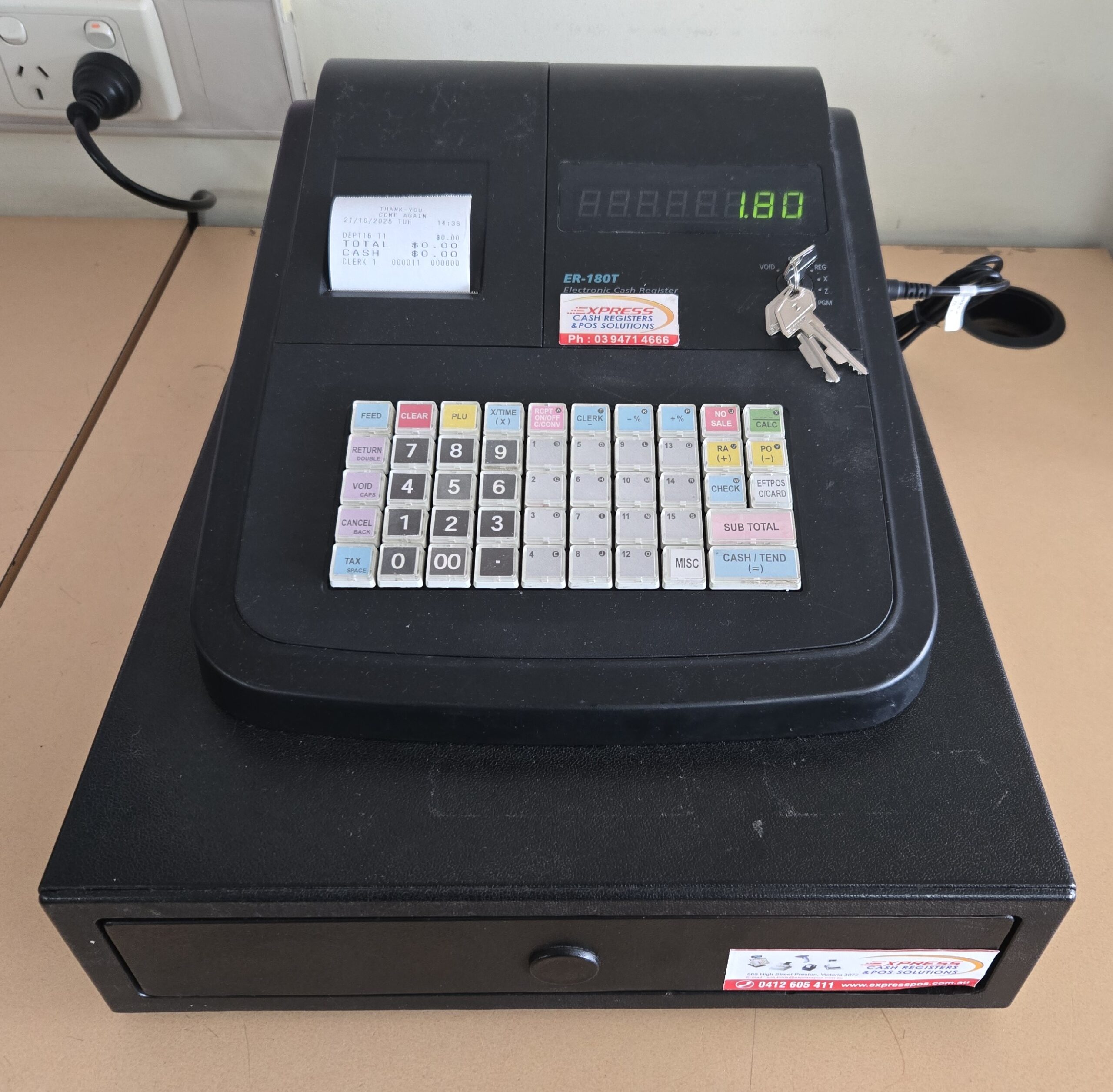 - Created by Sam4s, this ER-180T cash register is a single Station Cash Register that is both rugged and reliable in operation. A thermal printer means that you will never have to replace costly ink cartridges and the SMALL cash drawer allows you to take cash. The ER-180T has the ability to operate up to 16 departments and 500 Price Lookups. You also have the option to switch off the automatic printing of after sale receipts and only provide them if requested by your customer: this minimizes waste and saves you money. Preset for Australian GST and standard usage.